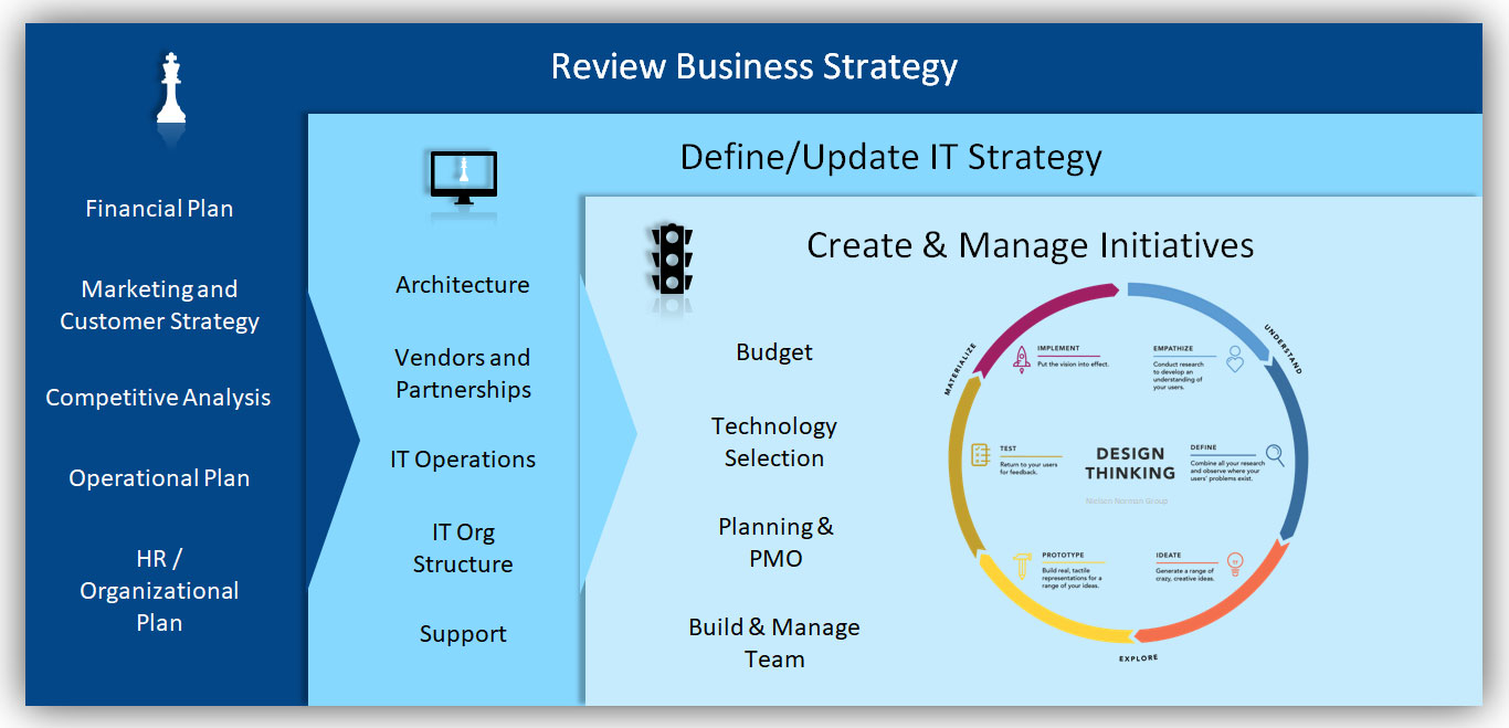 Initiatives must be integrated into a larger IT Strategy and tied back to tangible business results. We can help with all the components of a successful technology program.